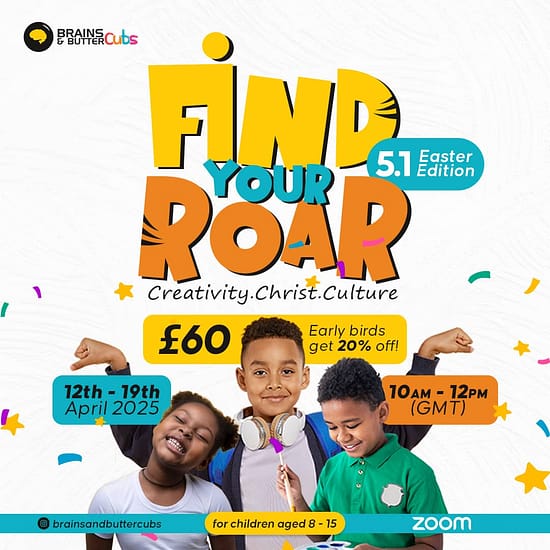 Find Your Roar is not just an online class. It’s a purpose-packed experience created for children aged 7–15 who are ready to grow, explore, and step into leadership. It blends three pillars every African child needs in today’s world: Creativity, Christ, and Culture.